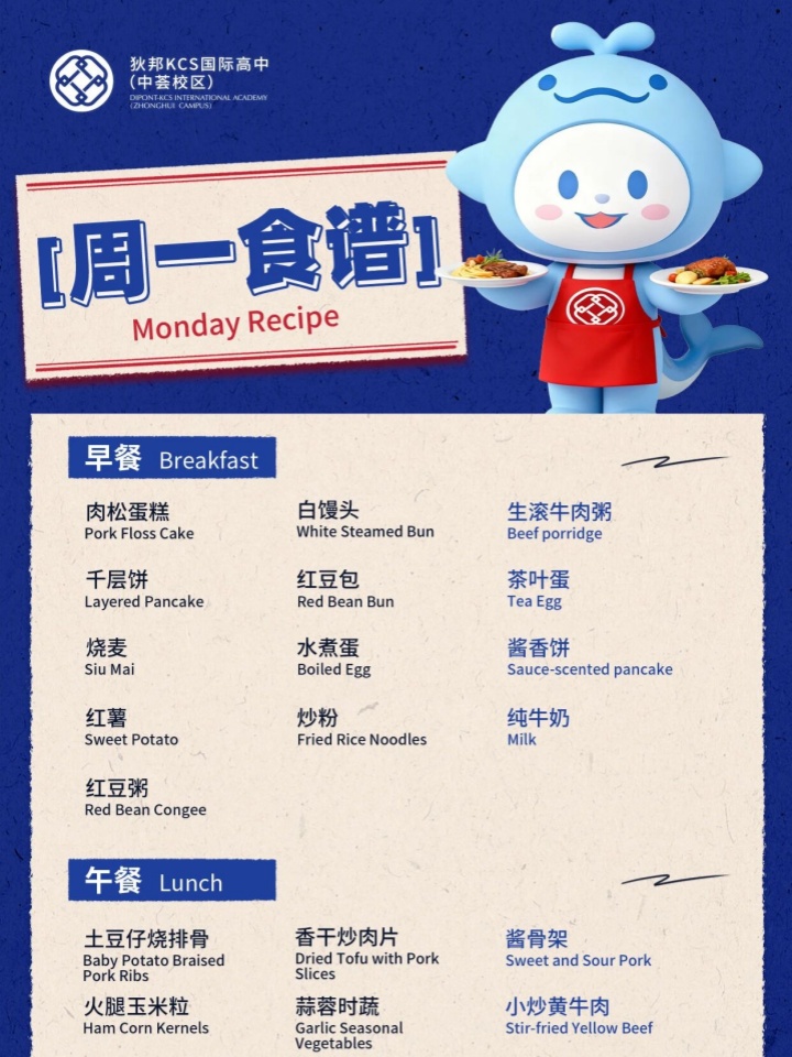 狄邦KCS国际高中(中荟校区)| Weekly Menu | DKIA 每周食谱分享(2.2~2.6)
