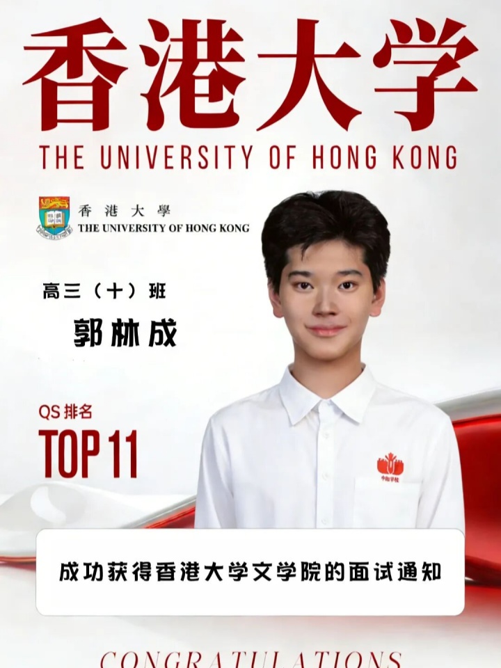 深圳(南山)中加学校 | 喜报!祝贺我校DSE班郭林成同学收到香港大学面试通知!