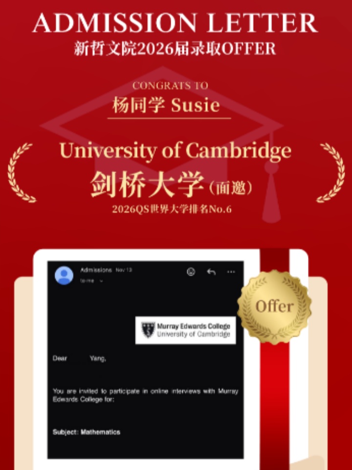 新哲文院 | 再添牛津英语文学面邀 | 7封牛剑面邀+13封G5奠定“年年有牛剑”传奇之基,新哲 26 届升学实力出圈!