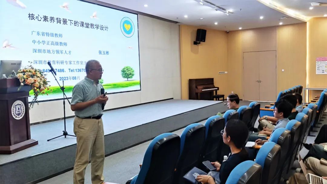 8月22日,深圳市福田區教科院張玉彬部長,帶來了《當代背景下,培養學生核心素養的課堂教學設計》的講座,張教授指出,學生核心素養的培養,要以立德樹人為基礎,用課堂實踐活動將知識轉變成素養。後對各學科的核心能力做出了細緻的講解和分析,讓老師們更加清晰了教學活動的核心與主旨。