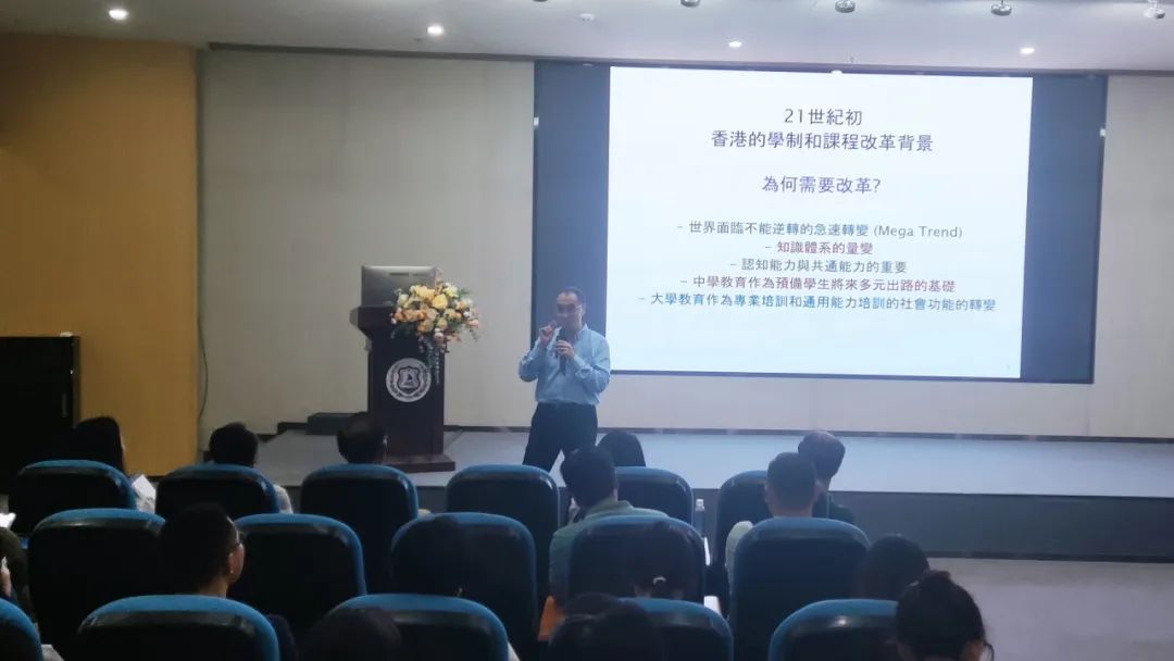 是日下午,我校邀請到香港考評局前秘書長張永明博士,帶來《DSE背景下政策及解讀》講座。張博士是DSE考試的創立元勳,作為教育界的老前輩,他從基層的工作經驗講起,一路演進,最終從宏觀角度解讀DSE考試創立的初衷,讓老師們明確了DSE教學的發展方向,更深感DSE考試對香港乃至全中國教育培養現代化人才的重大意義。