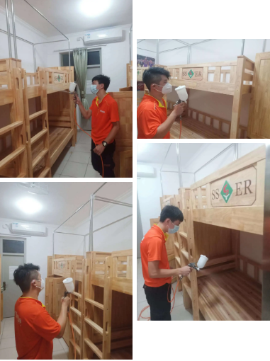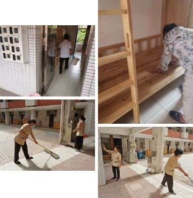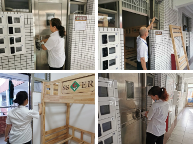 宿舍老师每天开窗、打开风扇通风,配齐寝室内的清洁工具,组织物业清洁人员搞好宿舍卫生,配合施工人员做好其他各项工作。