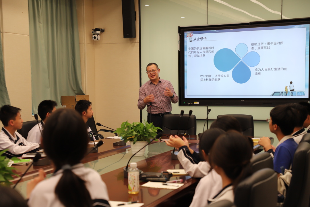 沈念,优稻良品农业科技发展(深圳)有限公司创始人。沈先生从中国的农业文化、中国农业现状、中国农业的行业前景和中国农业的进步等几个方面为同学们带来了丰富而详实的报告,使大家对农业有了一个全新的认识。会后同学们与沈先生进行了良好的互动,提出了一些与农业相关的有深度的问题,沈先生都一一给予耐心细致的回答。同学们也展现出了关心国计民生、关心国家命运的胸怀和担当,体现省实深圳学子“三高四优”的品质和风貌。
