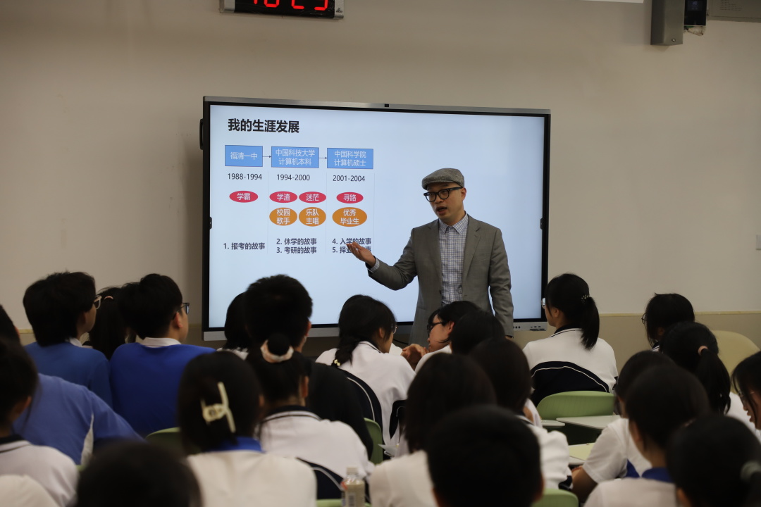 黄翔,蓝谷教育集团创始人,同时也是省实2005届校友。在今天的讲座中,黄先生与各位同学分享了自己从求学到求职到创业的经历。在省实优质校园文化的熏陶下,黄先生在少年时期就建立起了强大的自信心。这种坚定的自信心在他今后的学业和职业生涯中一直带给他非常正面积极的影响。他以此鼓励各位有志于投身教育行业的同学们,要珍惜在省实求学的时光,在省实提供的优质平台上提高自己的学业水平,锻炼自己的综合能力,成为“三高四优”的省实学子。讲座过后,在场同学积极提问,黄先生一一给予解答,现场气氛融洽而热烈。