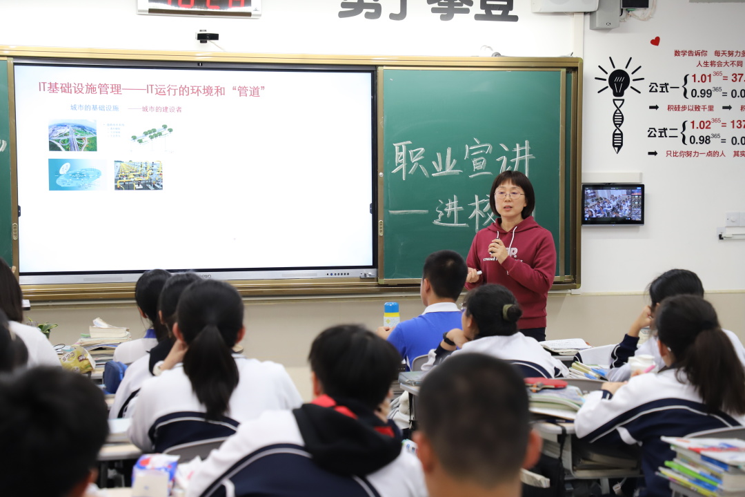 向琳,在华为工作达20年的IT行业项目管理者。向女士就华为企业发展史、IT行业具体职位及工作内容对同学们进行了细致的介绍。她运用许多生活中生动的例子,分析了网络工程师、信息安全与程序开发员、项目管理者等所需要的知识、能力,让同学们对该行业有了更清晰的了解。同学们对IT管理热情满满,在提问互动环节,向女士结合自身的成长经历勉励同学们要力争上游、顺势而为、找到自己合适的位置、不浪费资源,为国家作贡献。