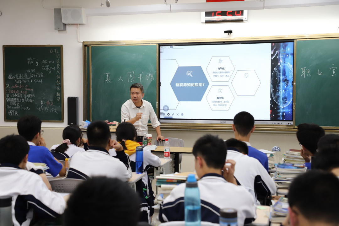 陈硕,国家火炬计划重点高新技术企业易事特公司总裁。陈先生为同学们开展了主题为“新能源,新未来”的专题讲座。陈先生对能源行业的演变和变革趋势进行了详细阐述,他对祖国的科技发展前景充满信心,鼓励同学们要勇于投身能源或科技行业。讲座结束后,陈先生还和同学们进行了深入的互动交流,对同学们生涯发展规划进行了专业的指导。