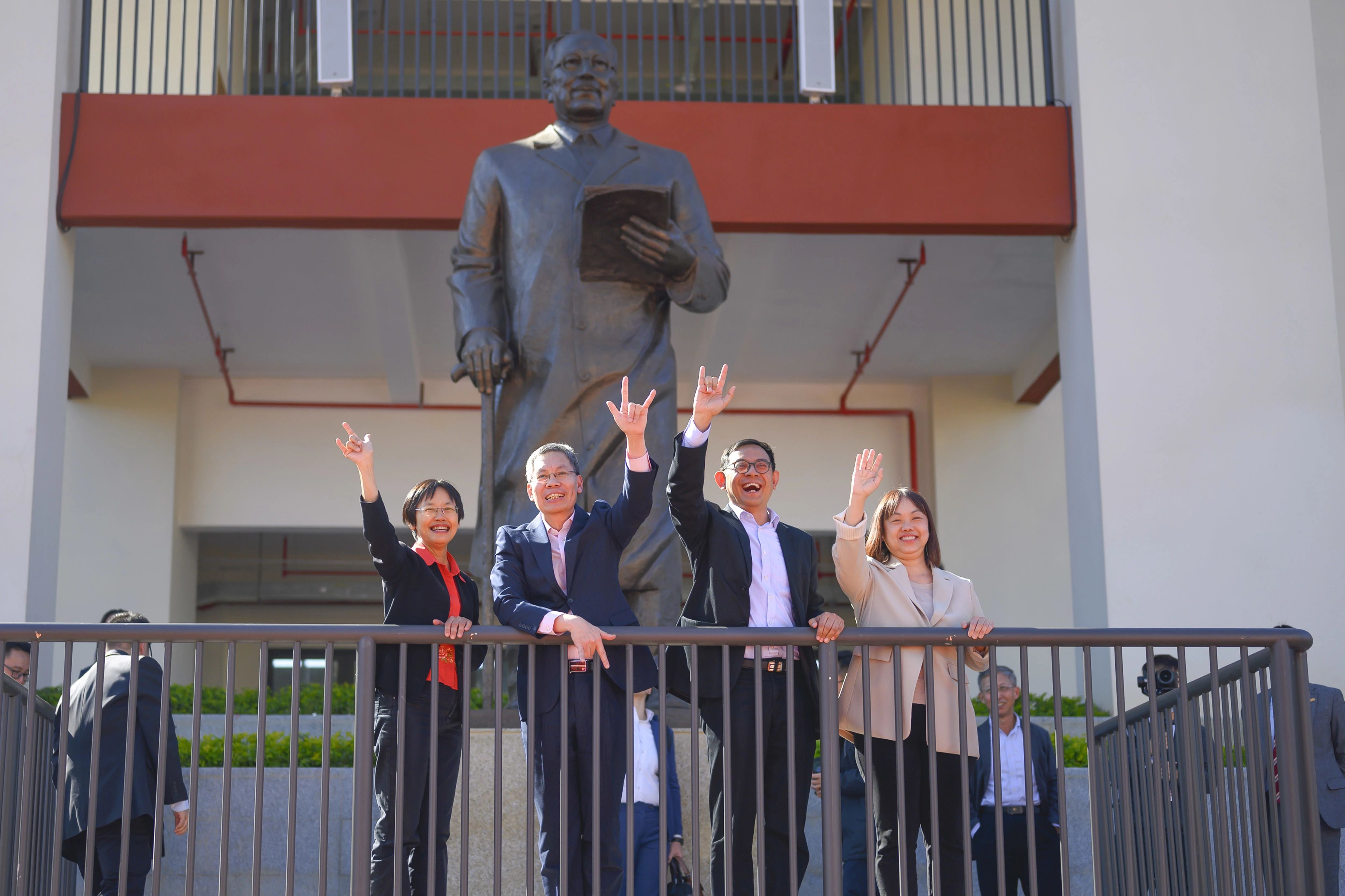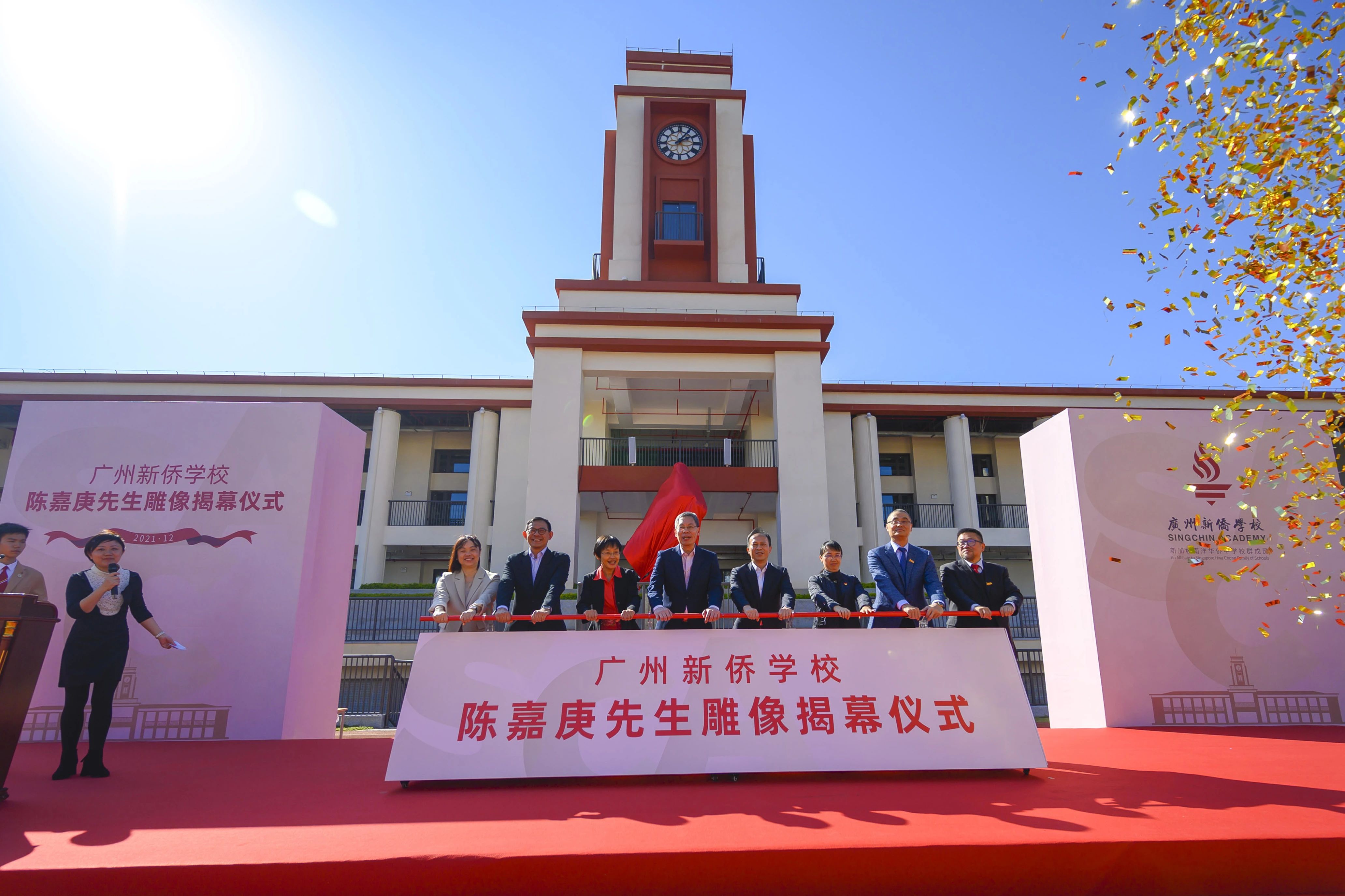 随后,吕德耀大使、罗德杰总领事、周亚伟书记、冼银崧区长等领导嘉宾,共同出席了新侨学校陈嘉庚先生雕像揭幕仪式。