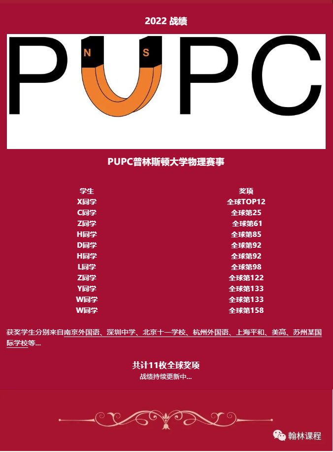 【精英榜】最高全球TOP12!恭喜翰林学院学员斩获11枚全球奖项,普林斯顿PUPC“硬核”战绩重磅登