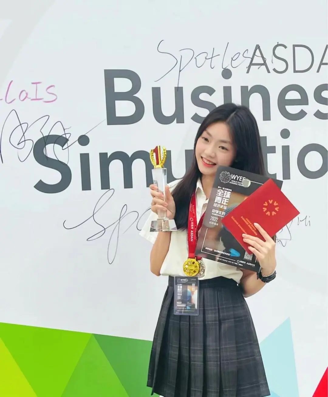 但黄广中学国际课程班轻松的成长氛围让我慢慢卸下了心防,老师们鼓励我不断尝试新鲜事物,从参加校园活动到竞选班干部,甚至参选学校学生会主席,在这些活动过程中,我的语言表达、逻辑思维、行动能力得到锻炼,让我离理想院校、梦想专业越来越近。