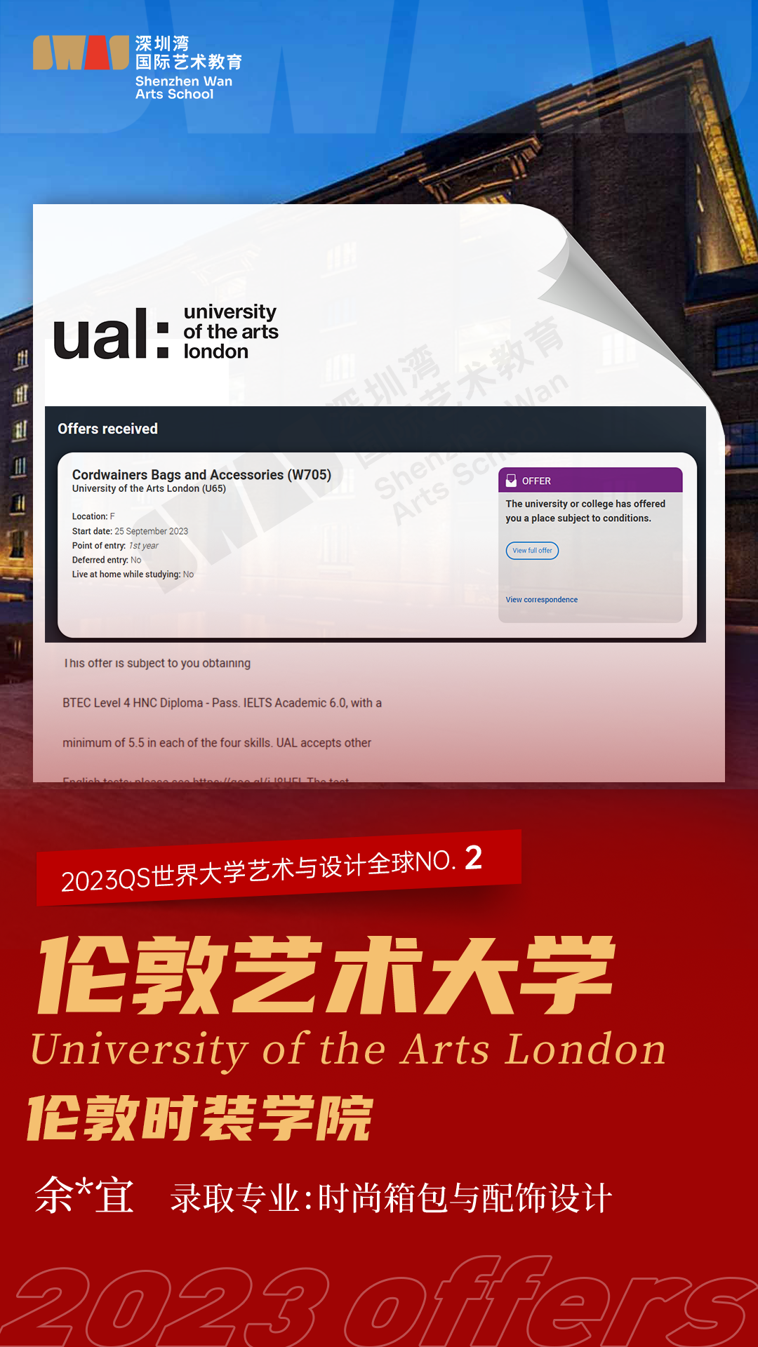世界顶尖时装学院!祝贺深圳湾国际艺术教育SWAS学子再获伦敦艺术大学录取offer!