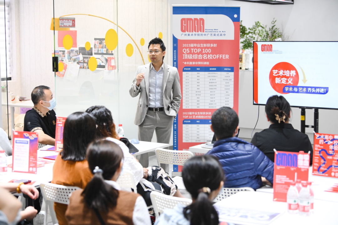 GMAA广美英式高中外籍校长Alex Li向学生及家长分享国际艺术培养的方式方法,分析海内外艺术院校录取情况,介绍GMAA办学理念,并提出「学术与艺术齐头并进」的教学目标!