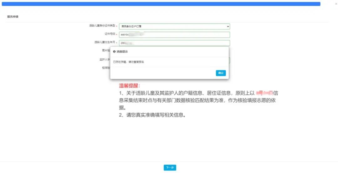 提醒:学生证件号码联动学籍系统核查是否有建立学籍(包含在校或者离校),有学籍则不允许重复报名。