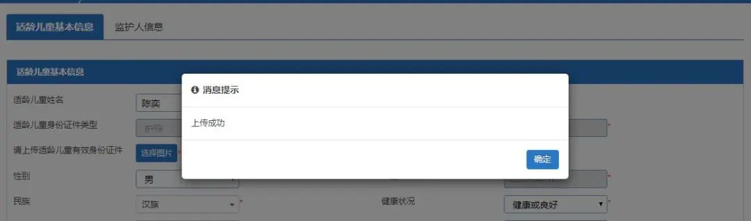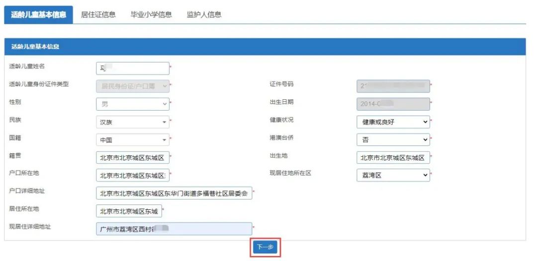 (一)【适龄儿童基本信息】:家长填写适龄儿童基本信息。