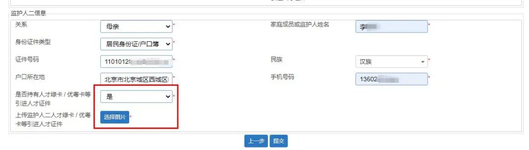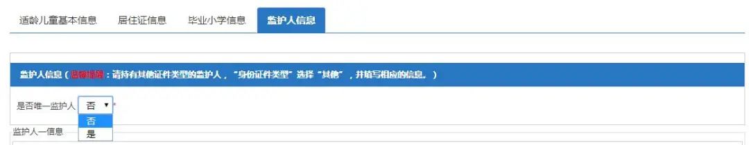 (2)如只有一个监护人,只需要填写监护人一信息即可。如果不是,继续填写监护人二的相关信息,操作方法同上。
