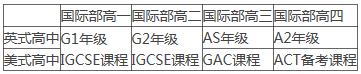 (1)在国际部的高一和高二年级,不分英式/美式高中,统一学习IGCSE课程;读完高二后学生开始分流,想参加英国高考的选择A-Level课程,想参加美国的高考的选择GAC 美国高考的备考课程。