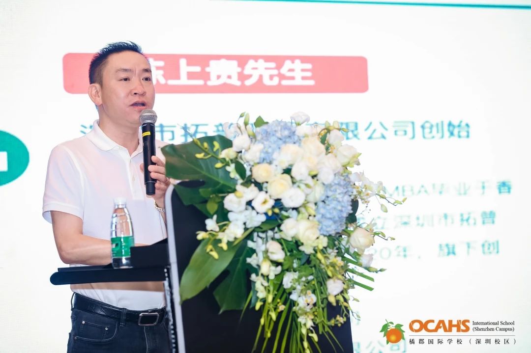 父母恩情重如山,一生难报父母恩。陈梓豪同学的父亲-深圳市拓普照明有限公司创始人陈上贵先生深情发言,感动于孩子们人生里程碑中重要的时刻,感谢所有老师一直以来的悉心关爱和谆谆教诲,勉励同学们承载梦想,扬帆起航。