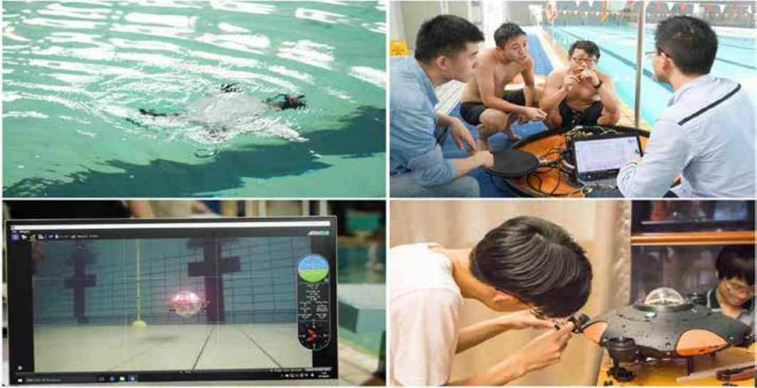 青少年UUV科研团队首先要了解海洋背景与流体力学知识,设计密封舱结构,尽可能使机器人减少水下阻力。然后动手设计并搭建一个具有视觉摄像头、声纳传感器、压力传感器、温度传感器、姿态传感器与任务执行器等设备的水下机器人系统。最后通过编程学习,完成运动控制、自动寻迹、图像识别、机器学习、多传感器监测等方面的水下实验训练。