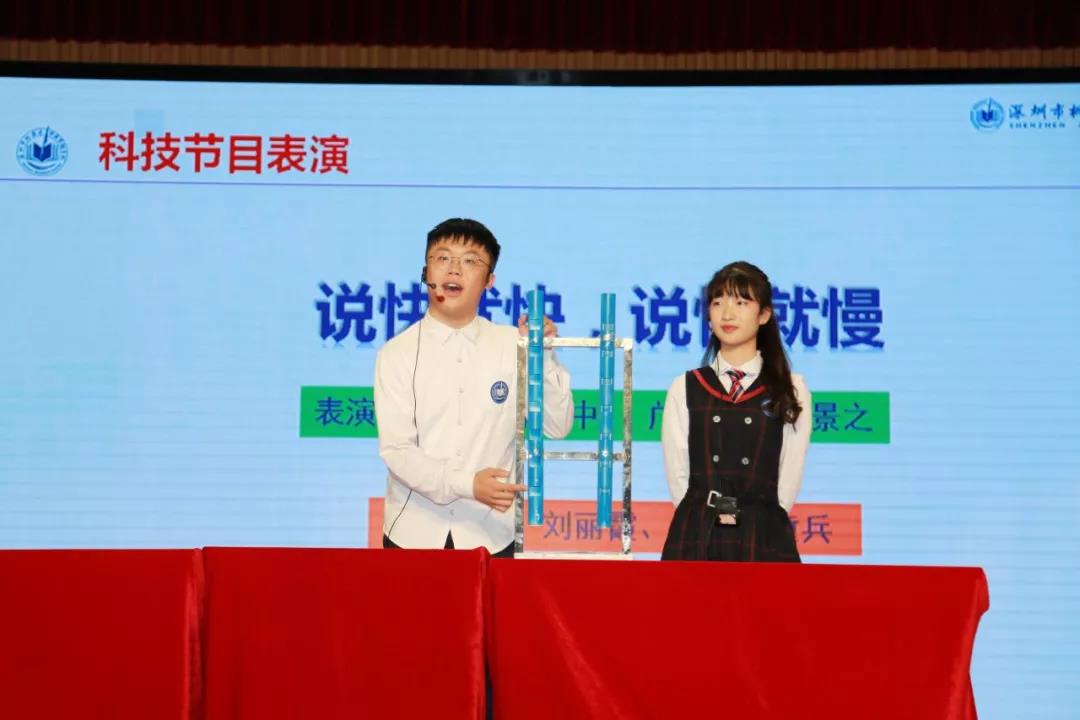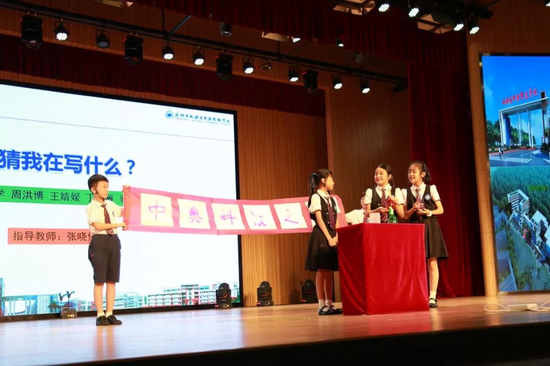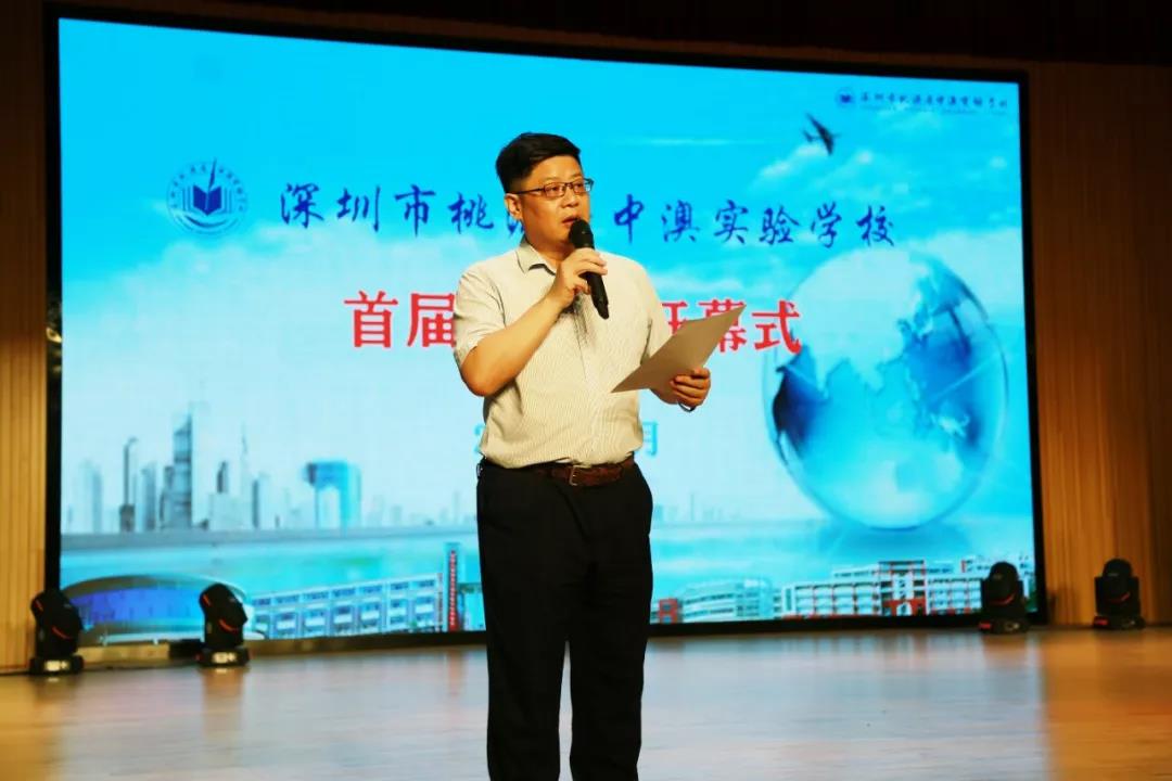 阮桂林校长助理宣布中澳师生在深圳学生创客节暨第34届深圳市青少年科技创新大赛上的获奖情况