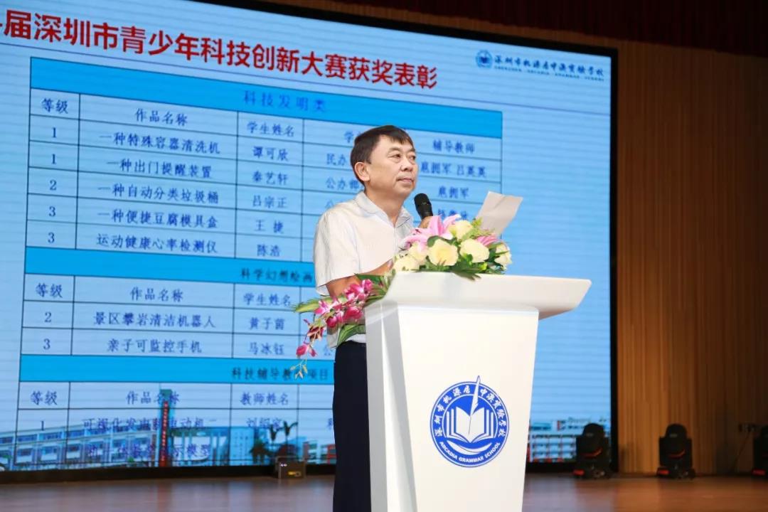 罗朗馥副校长、张敏副校长、吴庆星校监为在深圳学生创客节暨第34届深圳市青少年科技创新大赛上获奖的师生颁奖