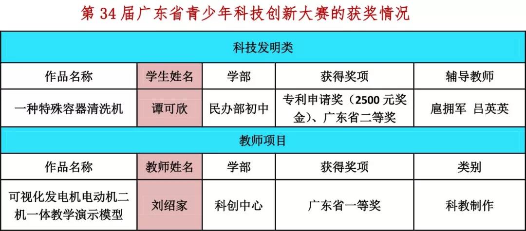 经过近两年努力,中澳科技创新素质教育取得了良好的成果,在深圳学生创客节和第34届深圳市青少年科技创新大赛上,喜获三金两银两铜的好成绩;在第34届广东省青少年科技创新大赛上,师生共获三项大奖,为深圳市争得了荣誉,还有九位同学的科技发明获得了国家知识产权。