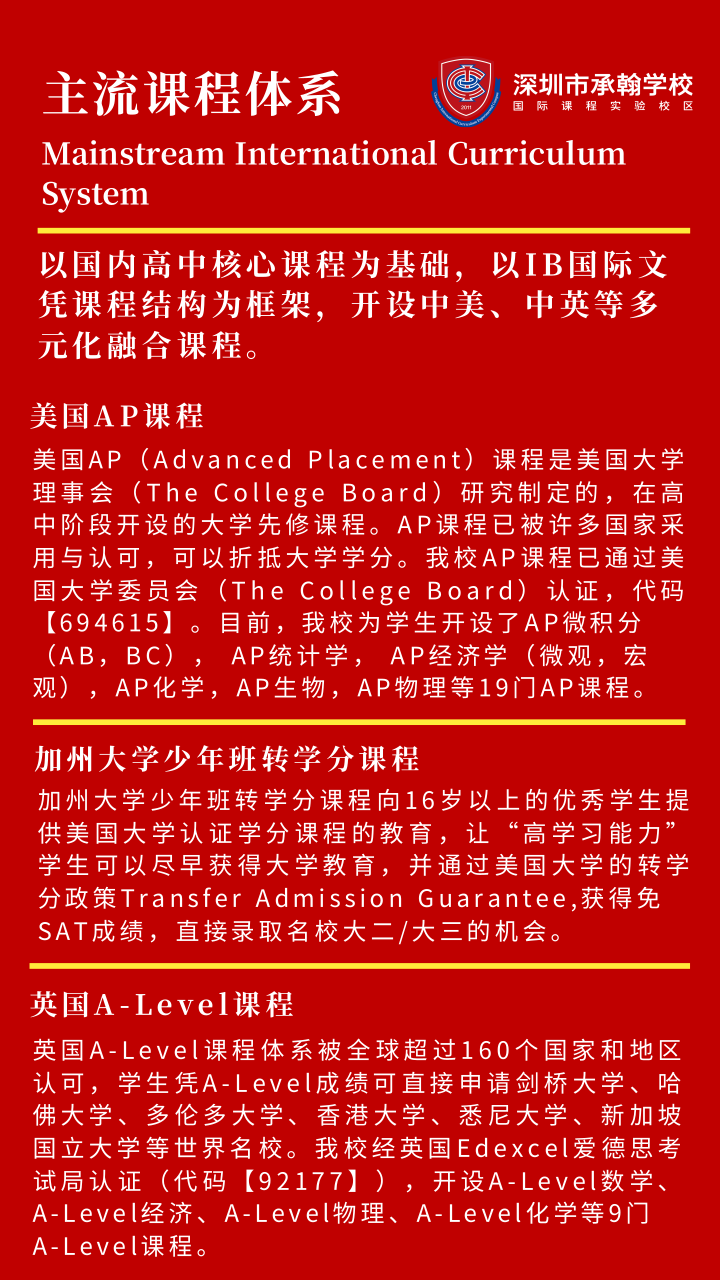 深圳市承翰学校(国际课程实验校区)|2023-2024学年国际高中招生简章
