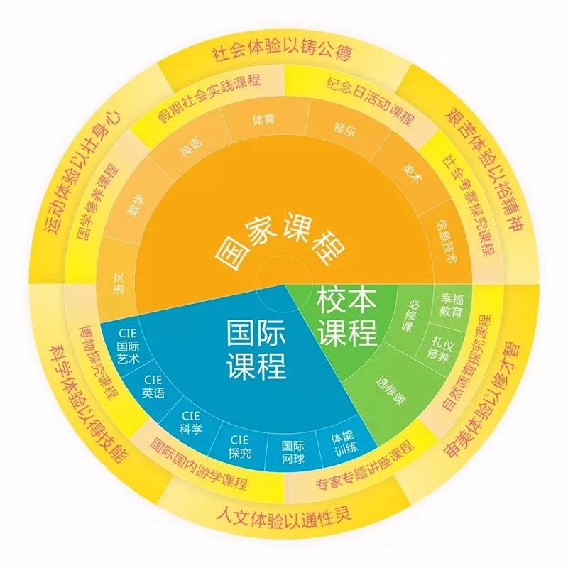 课程设置:国家课程(55%)、国际课程(30%)、校本课程(15%)