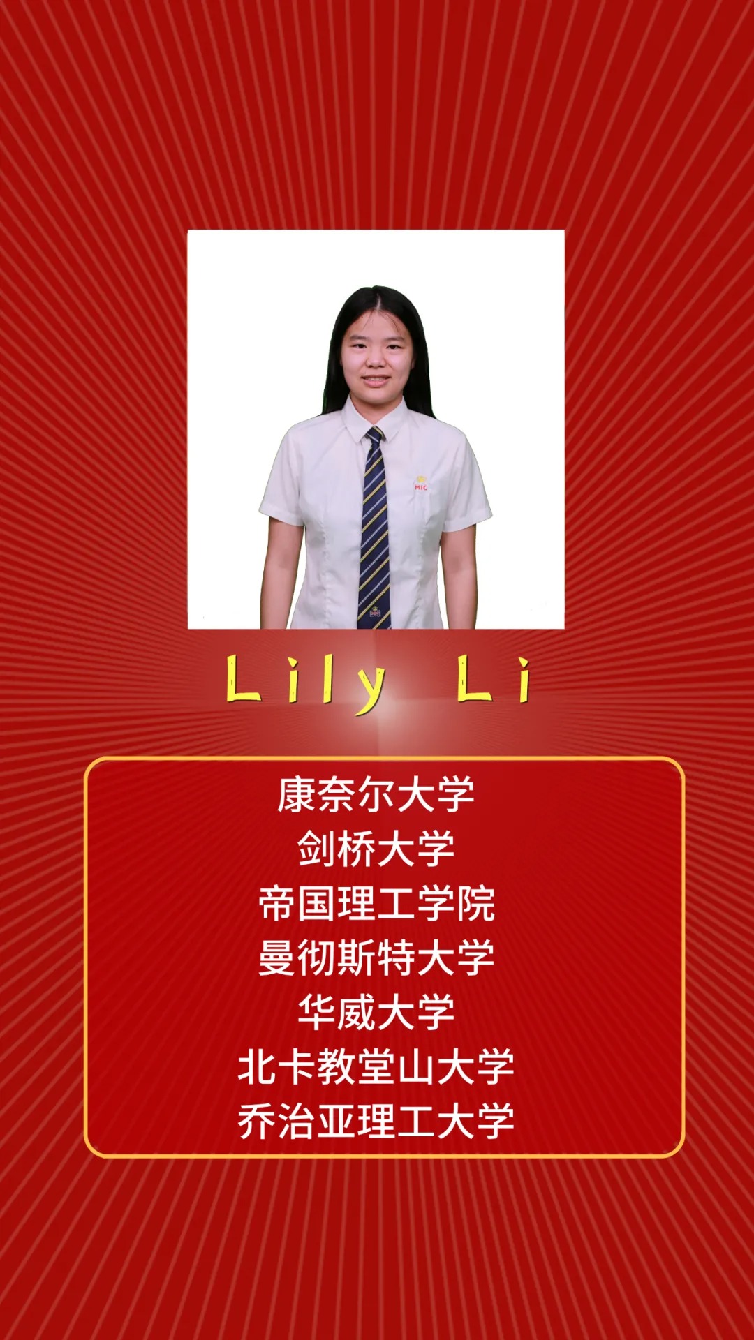 这一所优质国际高中就是美伦国际教育(简称“美伦”或MIC),她成立于2017年,办学至今已成功把学生输送至牛津大学、剑桥大学、康奈尔大学、北京大学、香港大学、南洋理工大学、多伦多大学等知名大学就读。在2020年、2021年连续两年收获“牛剑”、“藤校”级别的世界顶级大学录取,2021年继续实现53%毕业生被世界前50大学录取!
