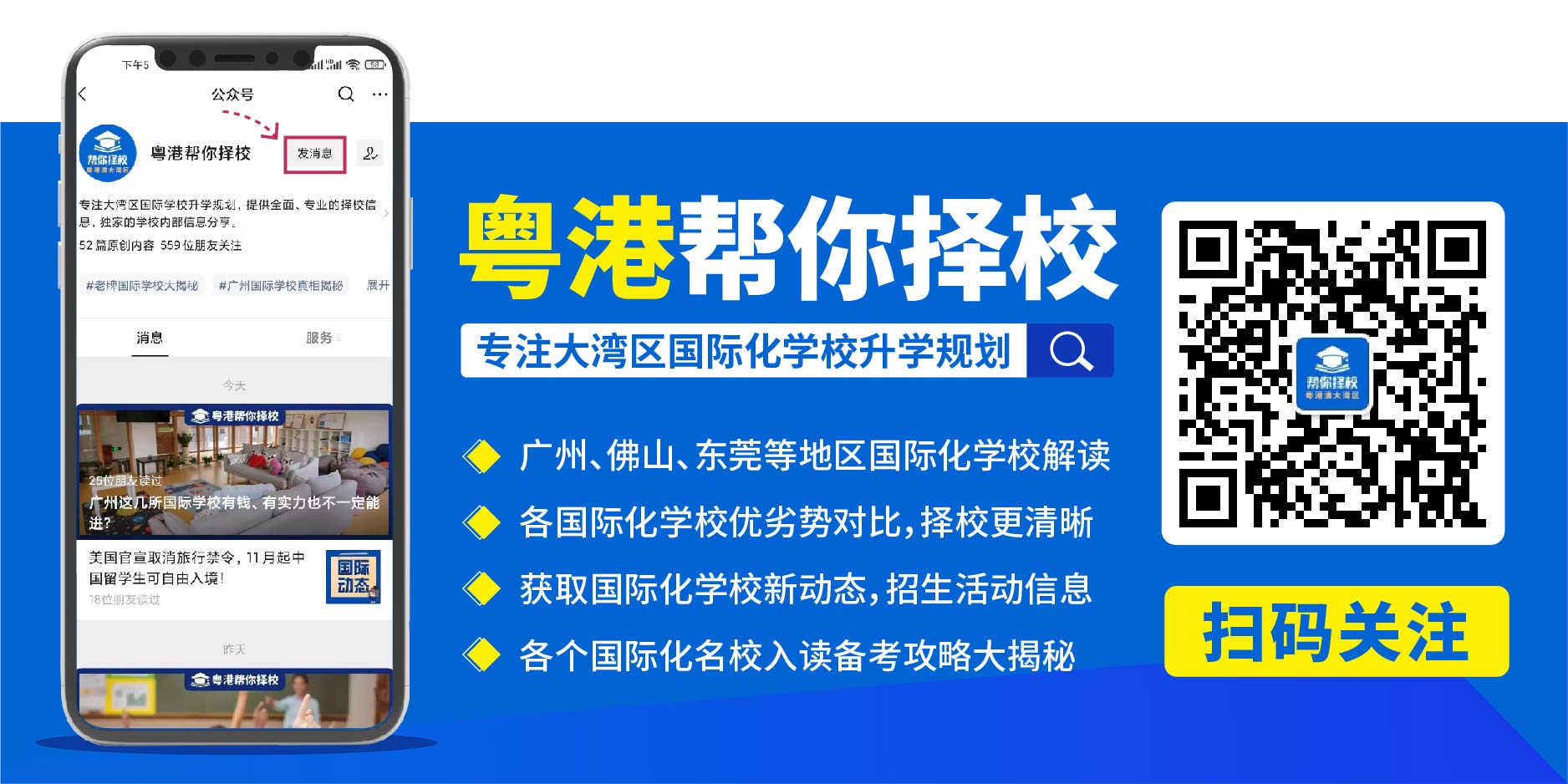 如果您想要提前了解关于国际学校的全面信息,家长们可以扫码关注“粤港帮你择校”公众号了解国际学校新资讯!