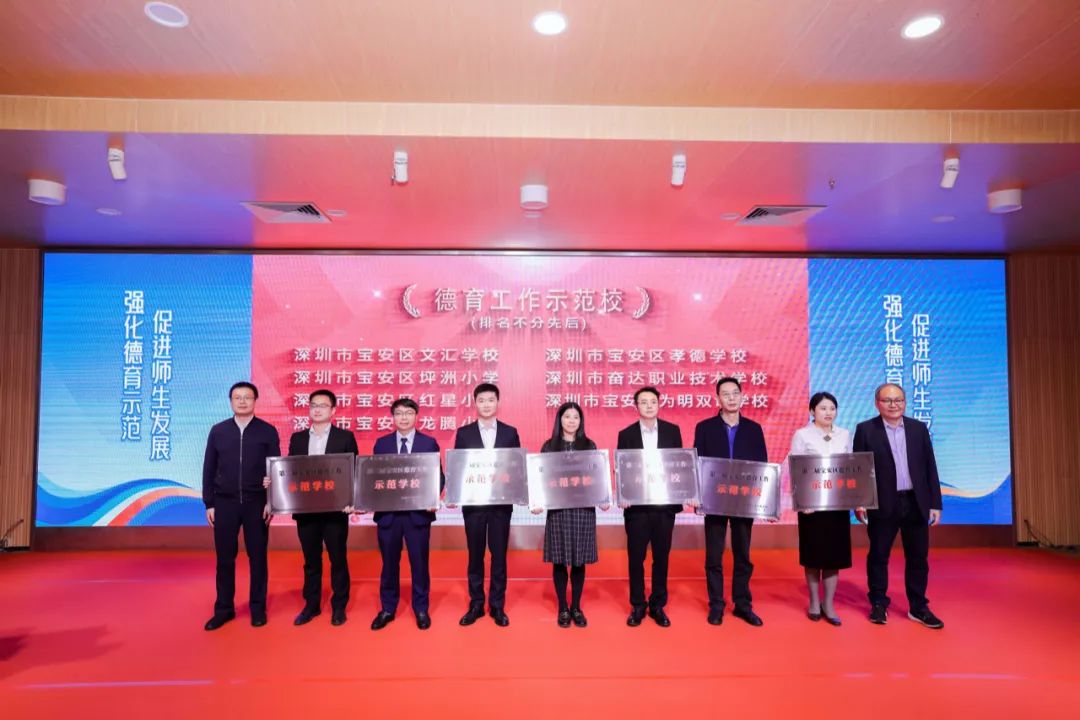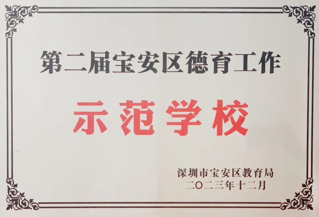 促进师生发展”宝安区第二届第三批德育示范校评估总结会暨第七届班主任节闭幕式圆满举行。我校凭借创新型的德育模式荣获“宝安区第二届第三批德育工作示范校”荣誉称号。