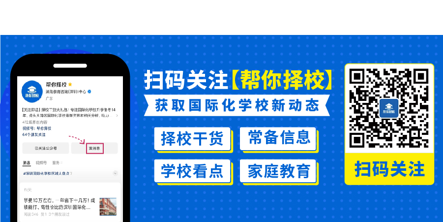 如果您想要提前了解关于国际化学校的全面信息,家长们可以扫码关注“帮你择校”公众号了解国际学校新资讯!