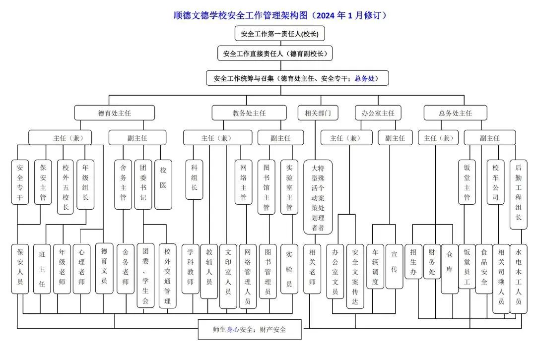 ▲顺德文德学校安全工作管理架构图
