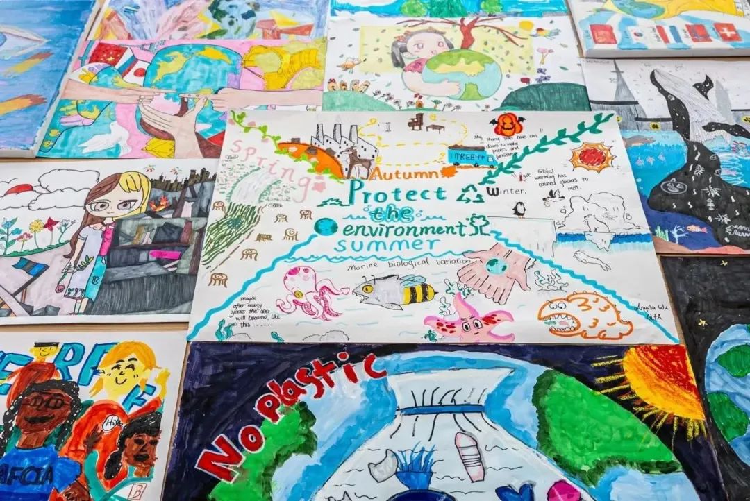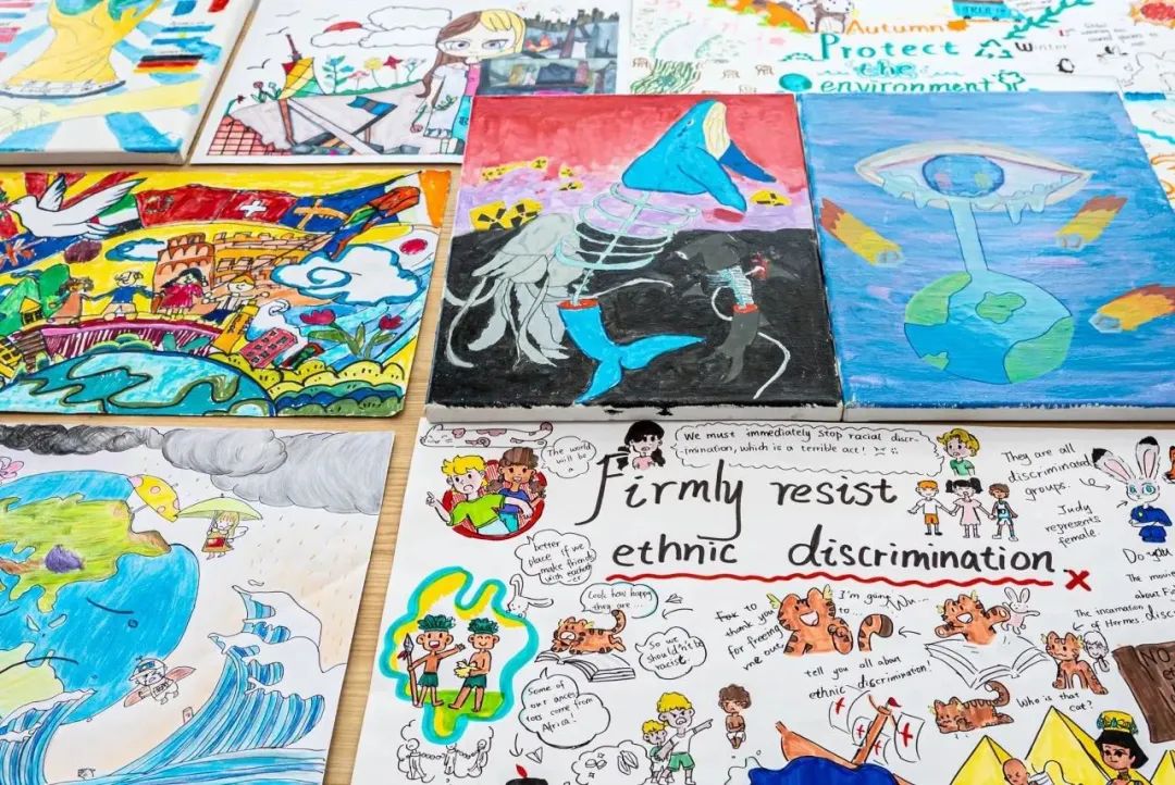 同学们用不同的构图和色彩,阐述着自己为了让世界变得更美好所做出的思考,以及眼中美好未来的景象。