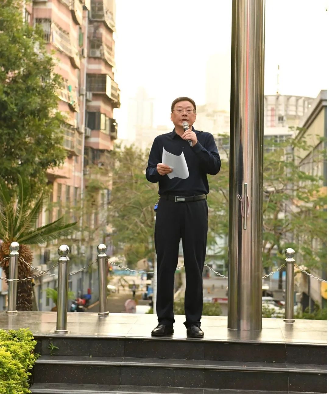 首先映入眼帘的是庄重而热烈的升旗仪式,五星红旗在朝阳中冉冉升起,象征着新学期的希望与梦想也随之扬帆起航。彭副校长的致辞更是掷地有声,他以“春种秋收结硕果,桃芳李艳又一年”为主题,寄语全体师生在新的学年里,勇攀学术高峰,砥砺前行。