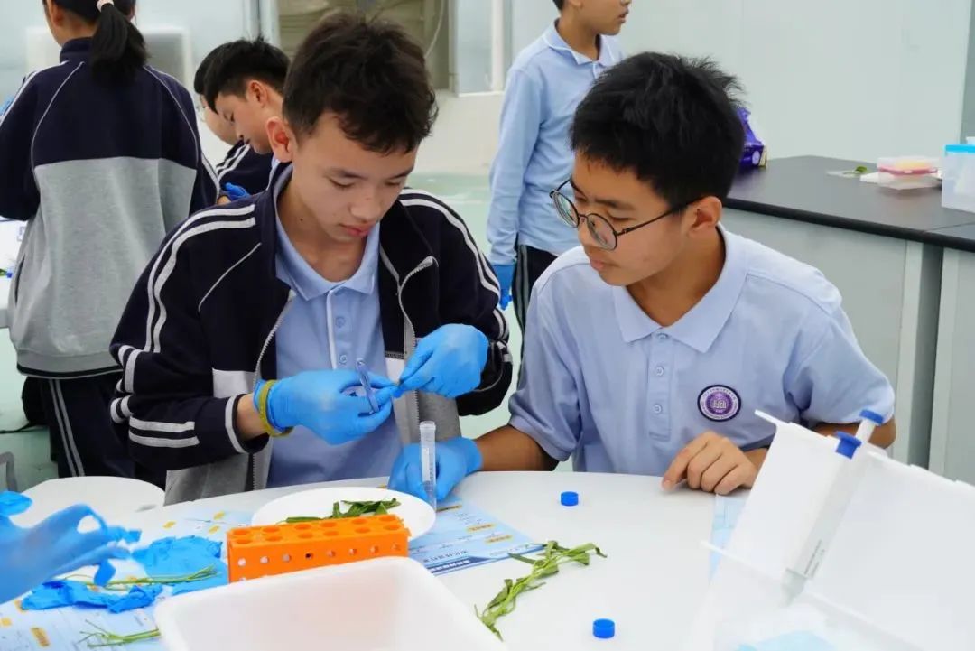 在实验员的带领下,同学们以小组为单位,完成无土栽培架搭建、营养液配制、菜苗清洗及移栽、调试设备等实验,大家齐心协力,一起揭示无土栽培的奥秘!