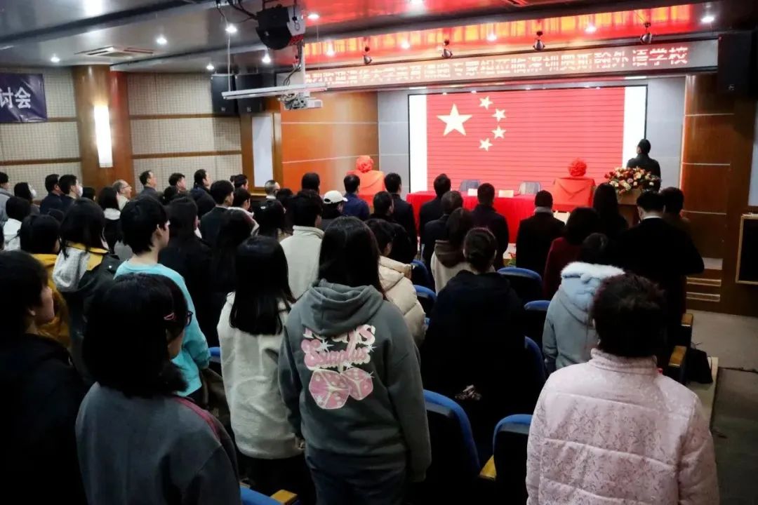活动伊始,全体人员肃立,国歌响起,齐声合唱。