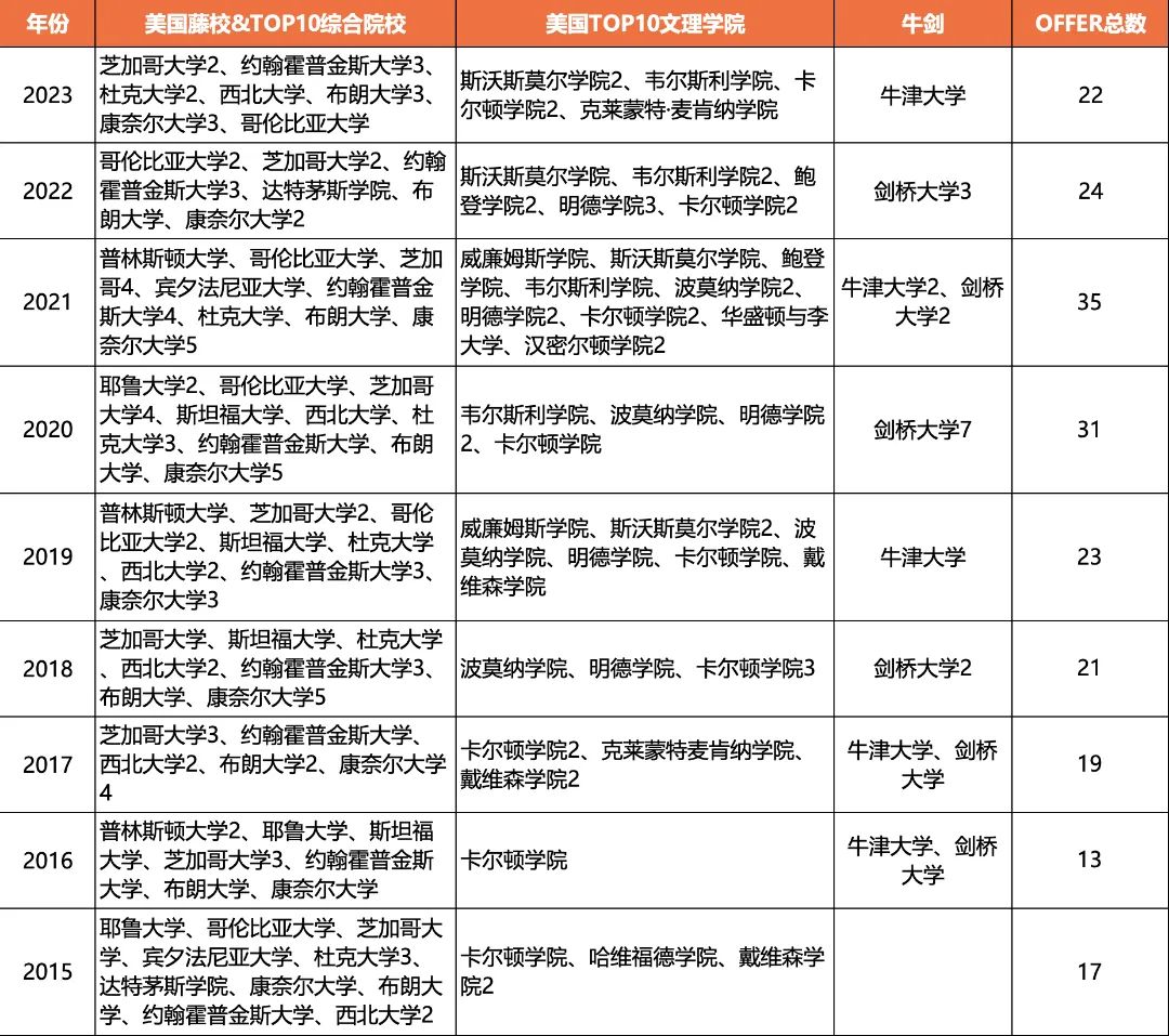 超过170人次获得美国藤校+TOP10院校(本科级别)录取