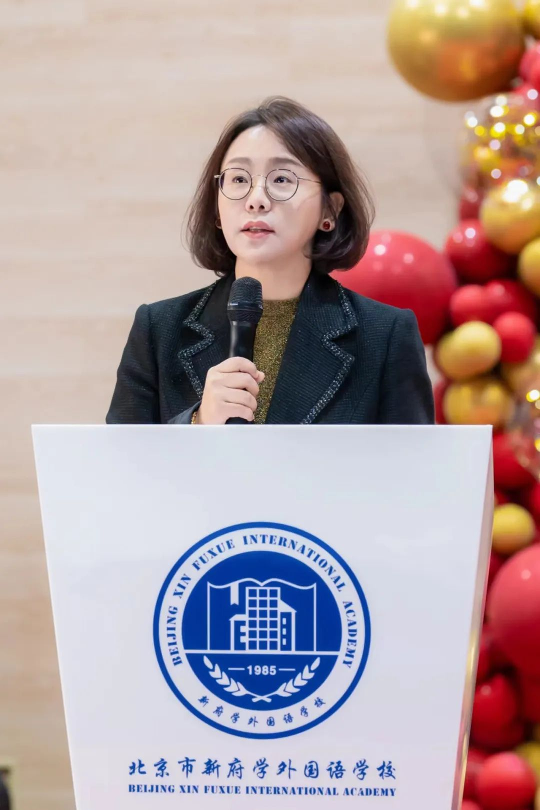 G1-4班Moon同学的妈妈作为小学家长代表发言,她说作为一名家长最让她感到动容的是,在新府学无论是孩子们之间,师生之间,还是家校之间,都是在传播着一种善意的关系,孩子们能带着这份善意成长,是他们人生的一笔宝贵的财富。她相信,在这种善意下新府学会带领着孩子们走向更高更远的舞台。