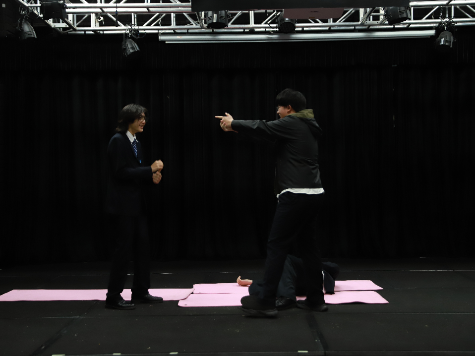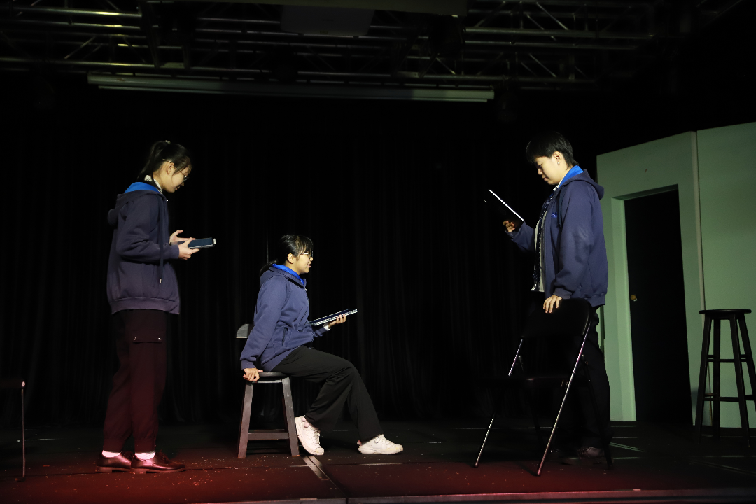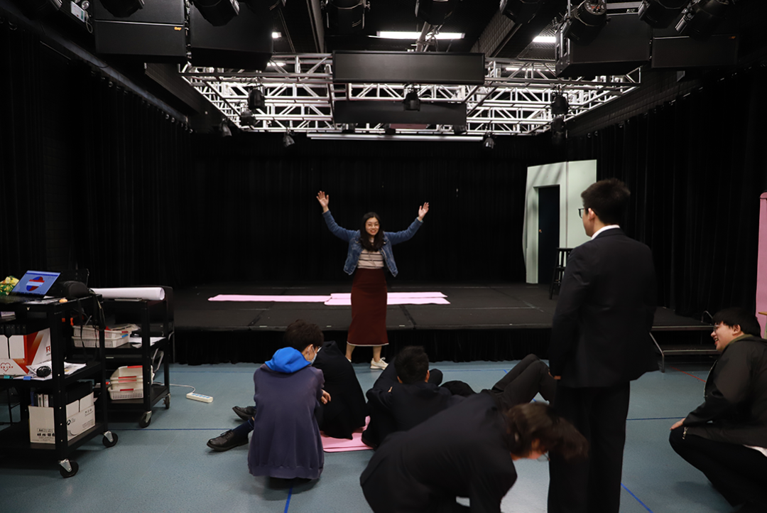1月中旬,被大家戏称为“小黑屋”的Black Box剧院里,根据戏剧老师Ms.Joanna Pan给出的刺激性情节引子(Stimulation),同学们分组构思情节发展,在不伤害自己的前提下嵌入摔倒在地的场景。