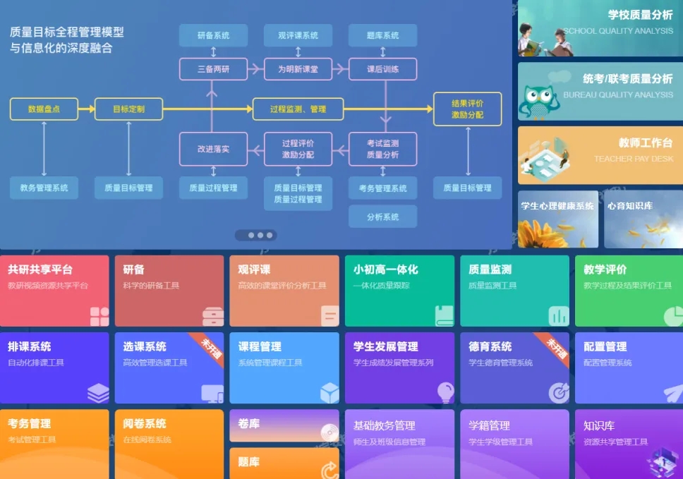 蜂云·学生基础信息管理平台:老师结合学生画像、家庭画像等信息,了解学生家庭重要情况和成长背景;蜂云·心理健康监测系统:老师借助心理监测结果,针对性进行心理疏导沟通和个性化指导,也为家庭教育提供科学指导;蜂云·考试分析系统:老师通过报表中心的成绩数据,明确学生学业情况和知识点薄弱区,在导师制沟通过程中,给予学生针对性提升建议,有的放矢。年级在质量分析过程中,通过分析模型进行多维度对比,给教师团队反馈教学质量;蜻云佳学+学信端:老师结合蜻云佳学的问卷反馈和微信小程序学信端的“学情分析”中的数据,进行学生沟通,实行个性化辅导。