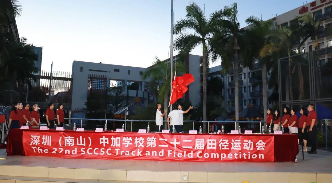出席本次运动会的领导嘉宾是:深圳(南山)中加学校执行校长张金仲先生,党支部书记、副校长杜娟女士,加方副校长Meghan Gallant,副校长王建忠先生,副校长冷晶女士,副校长李怡女士,校家委会主席李志香女士,校家委常务副主席于冰先生,校家委副主席盛艳丽女士,校家委副主席柳金艳女士,校家委秘书长张莉女士,校家委副秘书长夏婧女士,麦克马斯特大学副教务长Candy Hui, 国际招生官Leyla Zhang 和 Sharon Yang,参加开幕式的还有学生处、教学处的各位主任及全体教师们。
