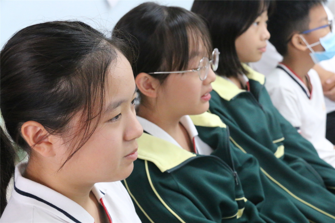 七年级学姐吴婉瑜从自己的改变开始,介绍了初中学习生活与小学的不同,谈谈自己的收获和感觉,六年级的孩子们顿时化身小迷弟、小迷妹。