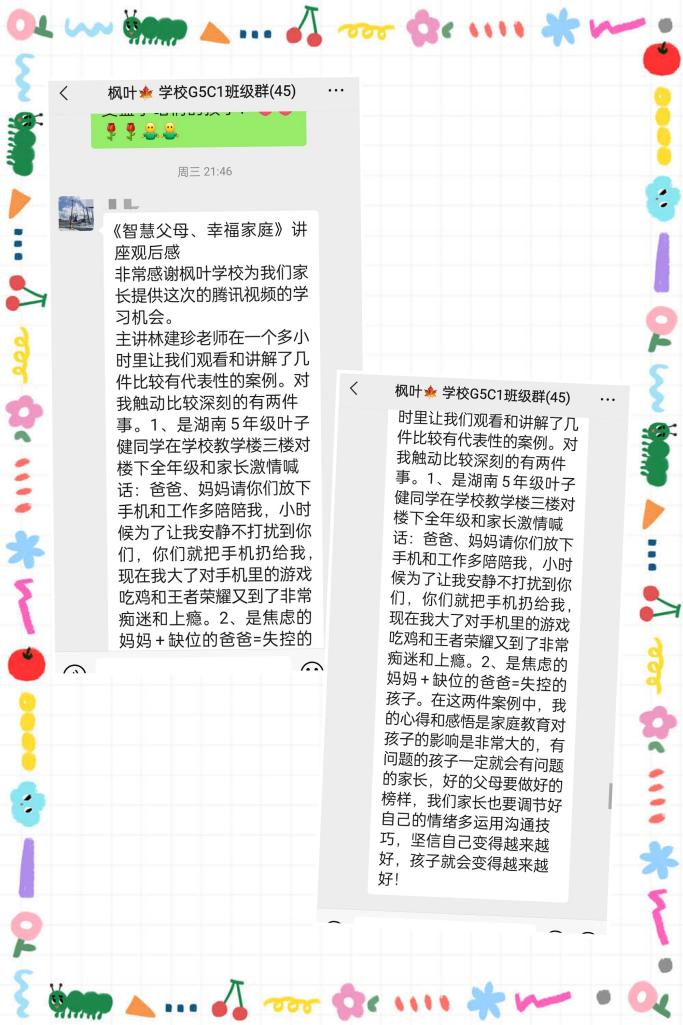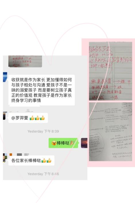 幸福家长学校”家长系列课程之《良好家庭教育影响孩子一生》授课圆满落下帷幕,课后,大家及时分享心得体会和学习笔记。