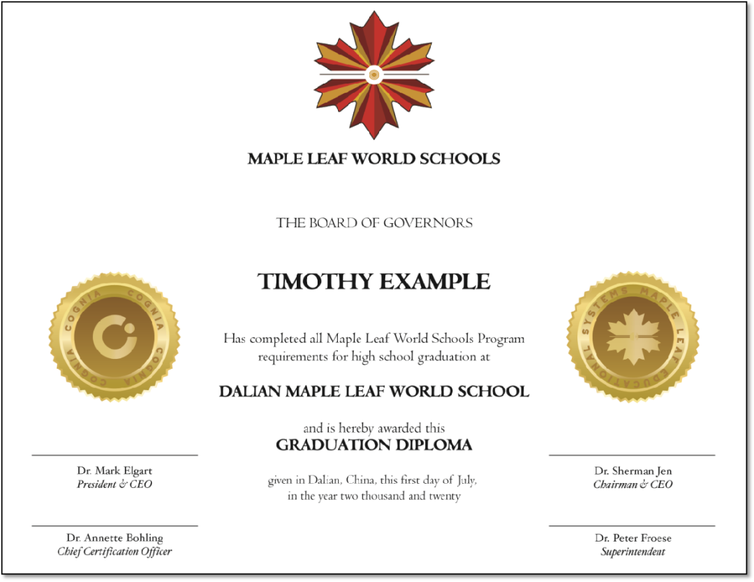 由Cognia背书的枫叶高中毕业证书;