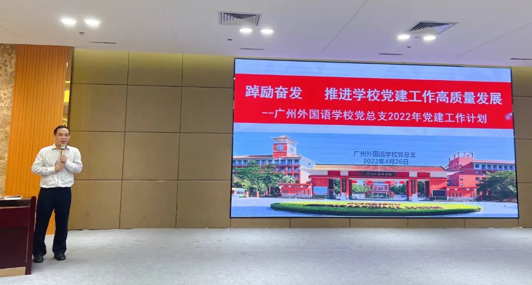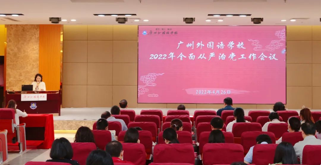 4月26日下午,广州外国语学校党总支召开2022年全面从严治党工作会议,学校领导班子成员及全体党员共同参加。