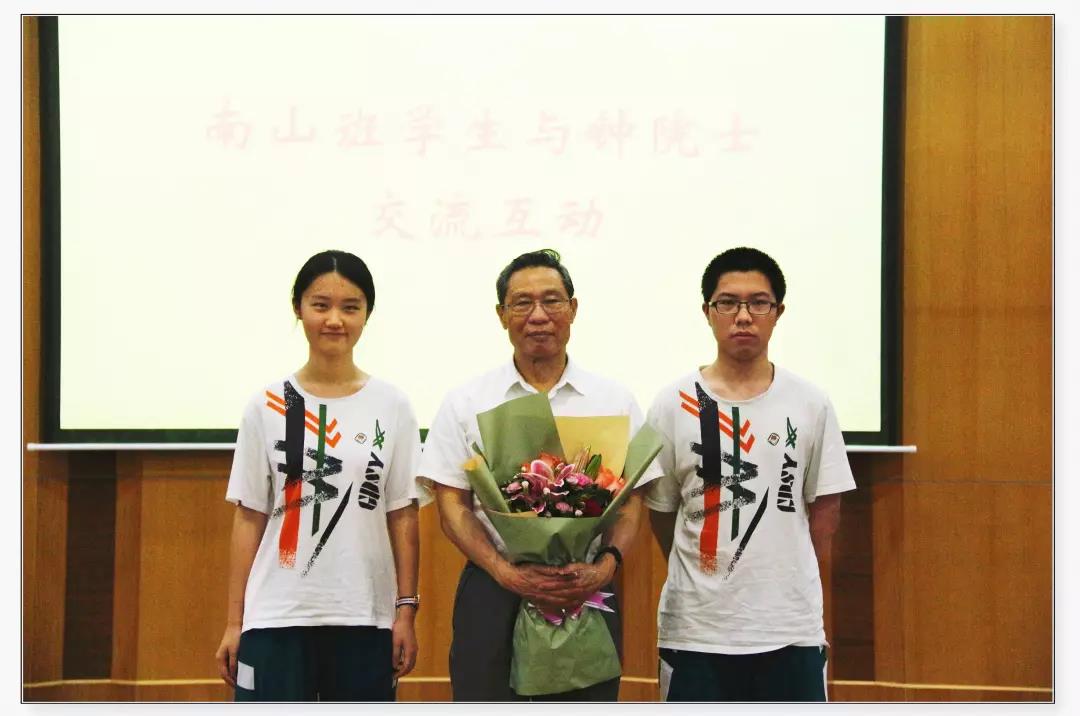 钟院士的发言中包含了多年岁月沉淀的睿智和对南山学子殷切的期望。他鼓励我们不止步于发明和发现,致力于创新,学以致用;他告诫我们不迷信权威,不迷信自我,尊重事实……他虽未言明却一直在践行:终身学习、强健体魄、全面发展、懂得感恩、承担责任……一颗充满大爱的医者仁心令人高山仰止。“听君一席话,胜读十年书”大概便是如此吧。