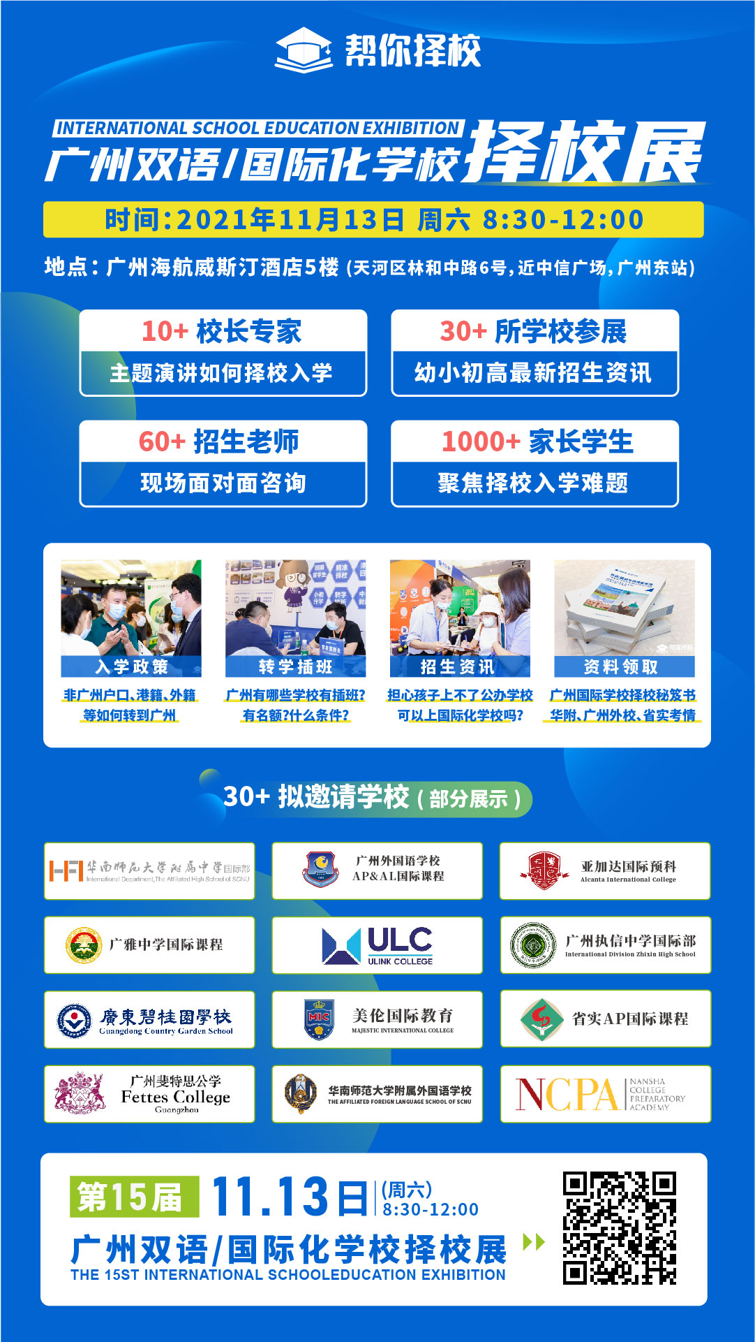 就在本周,11月13日(周六)上午8:30-12:00广州海航威斯汀酒店5楼,广州双语/国际化学校择校展一次性集齐30+所广佛地区国际化学校。