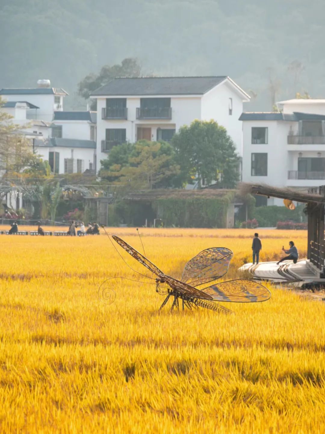 如今,我们站在观景台,放眼望去是一片金灿灿的稻田,远处涌动着麦浪,可坐小火车在麦田里穿梭,轻轻触摸麦穗,感受这一片土地的馈赠。