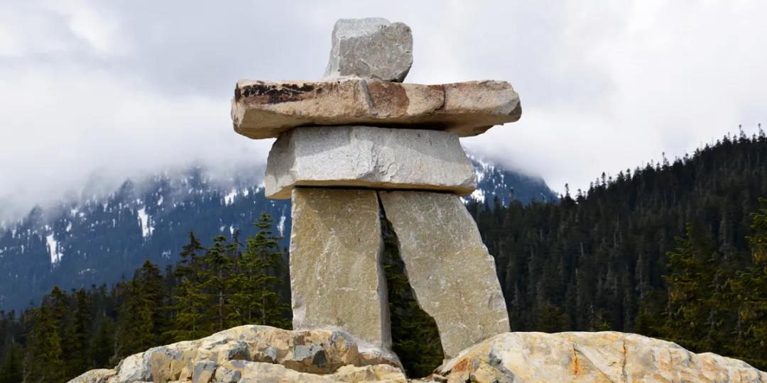 这是一个因努伊特石堆,是加拿大北部因纽特人的象征。他们是第一批居住在加拿大北部的人。Inukshuk这个单词的意思是“像人类一样”。