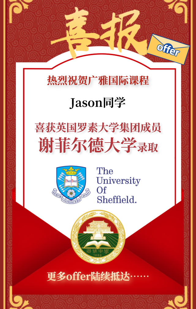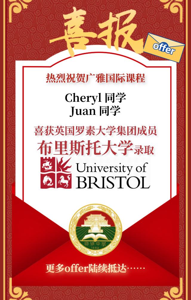 广东广雅中学国际部2022年海外高校录取喜报!初冬的第一批offer已送达!