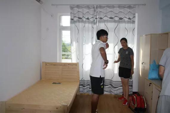 拿到个人用品后,同学和家长在我校招办老师的带领下,到学校学子花园B座入住我校花园式公寓宿舍,同时与宿管老师对接学生管理权。宿舍采用军事化管理制度,严格要求学生作息时间。分管宿舍的张主任是部队退役的教官,张老师精通部队内务与自由搏击术,其平易近人却纪律分明的性格,使家长们纷纷表示孩子交给张老师那是一百个放心。